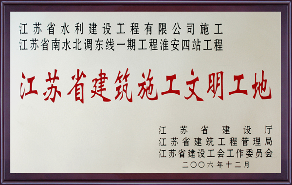 公司連續(xù)多年被評為全國水利建設先進集體、全國優(yōu)秀水利企業(yè)、全國安全生產(chǎn)和質量管理先進單位、江蘇省文明單位、建筑業(yè)百強企業(yè),榮獲江蘇省“五一勞動獎章”。