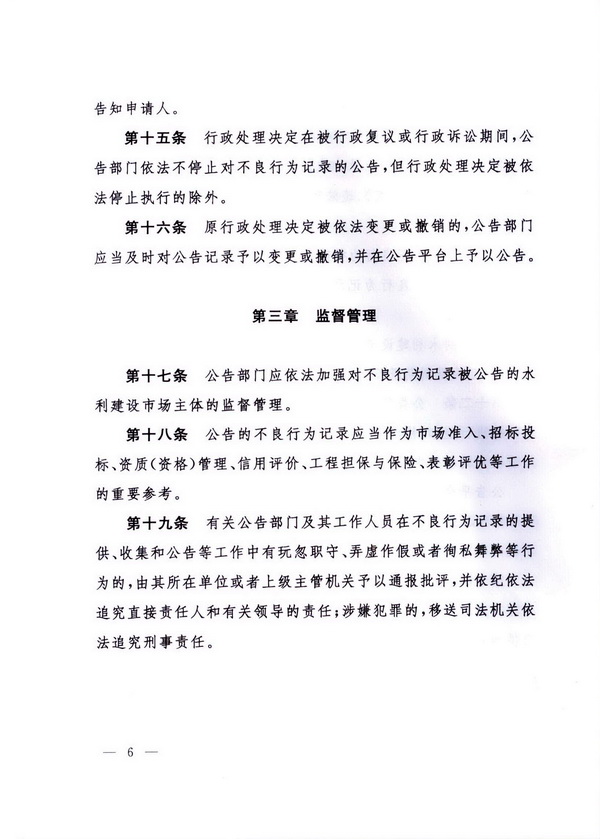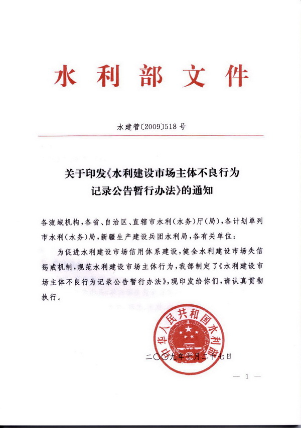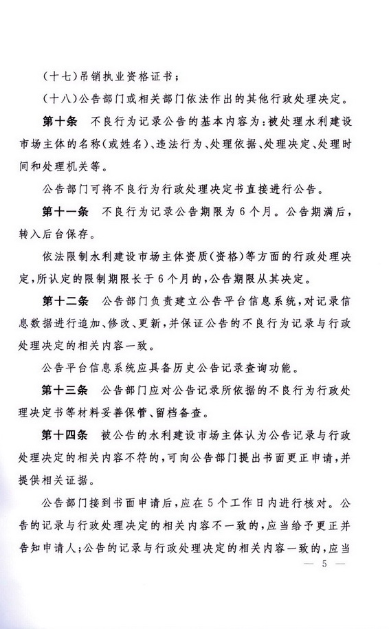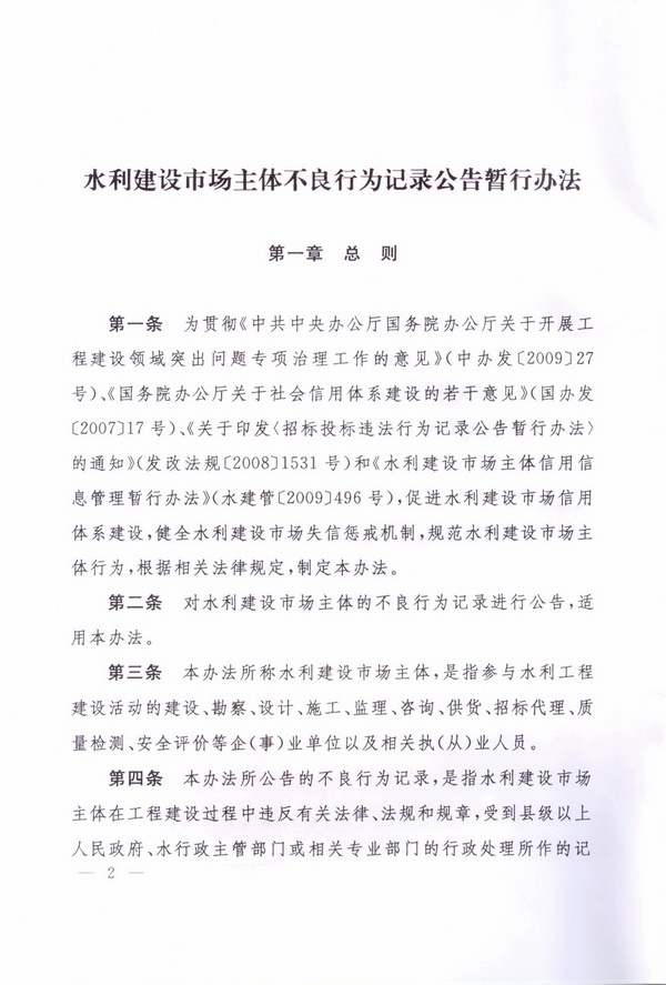 水利建設(shè)市場主體不良行為記錄公告暫行辦法