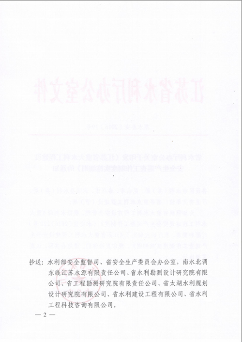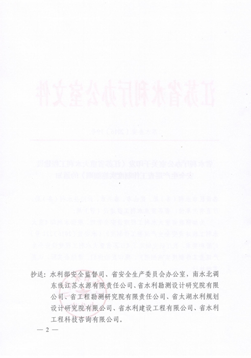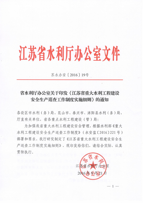 省水利廳辦公室關(guān)于印發(fā)《江蘇省重大水利工程建設(shè)安全生產(chǎn)巡查工作制度實(shí)施細(xì)則》的通知