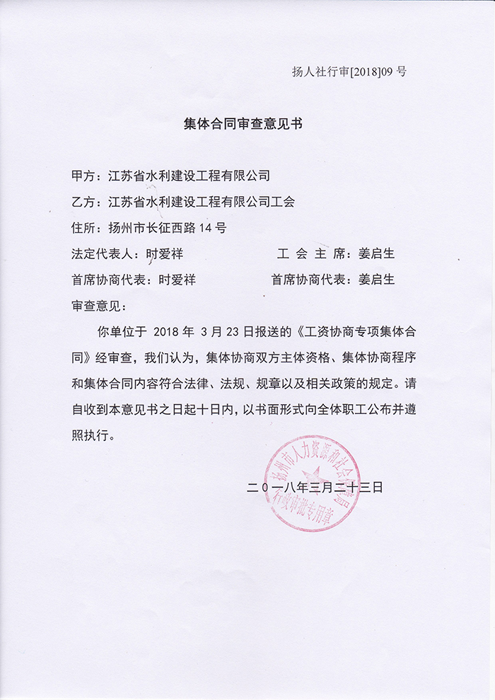 工資協(xié)商專項(xiàng)集體合同審查意見書