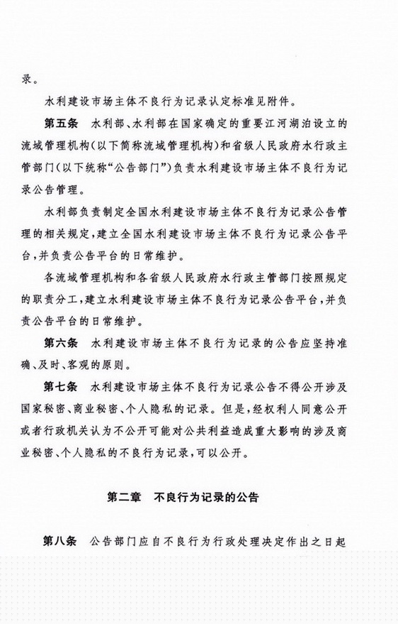 水利建設(shè)市場主體不良行為記錄公告暫行辦法