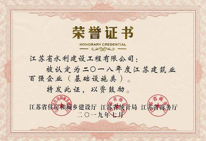 公司連續(xù)多年被評為全國水利建設(shè)先進(jìn)集體、全國優(yōu)秀水利企業(yè)、全國安全生產(chǎn)和質(zhì)量管理先進(jìn)單位、江蘇省文明單位、建筑業(yè)百強(qiáng)企業(yè),榮獲江蘇省“五一勞動獎?wù)?rdquo;。